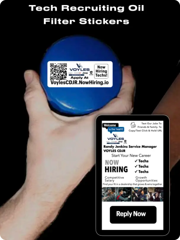 Now Hiring Techs Oil Filter Stickers. Spread The “Word” You’re Hiring!